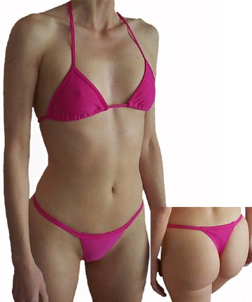 This product is carefully hand made at time of order, please allow up to 3 weeks for delivery. New Thong Bikini. This new thong bikini bottom has low scoops and high-cut legs making it the perfect bottom for any Beach Goddess. This skimpy bikini is perfect for tanning or just showing off. Comes with our Brazilian style Adjustable triangle "slide style" bikini top. Both top and bottom are fully lined. Please note due to hygienic reasons Tonga & Thong bikinis are not returnable. Comes in Small (Top sizes A-B, Bottom size 0-2), Medium (Top Size B-C, Bottom 0-4), Large (Top Size C-Full C, Bottom 5-10).